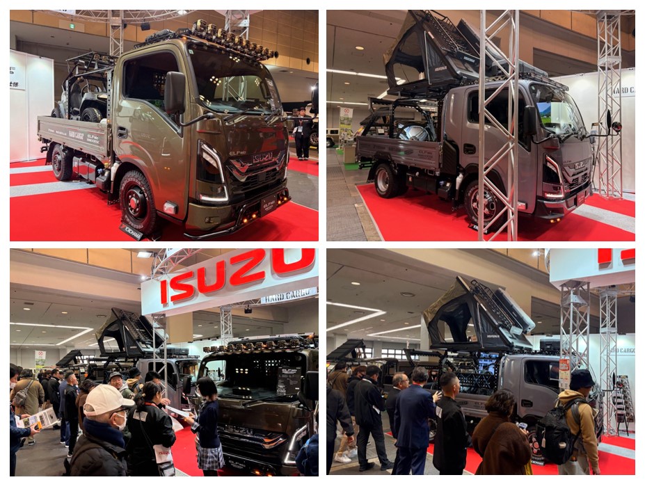 「ELF CUSTOMIZE Lab.(エルフカスタマイズラボ)-走りだせ、冒険仕様-」をテーマとし、「CROSS STYLE ACCESSORIES(クロススタイルアクセサリーズ)」を装着した2台を出展し、共同出展のヤマハ発動機株式会社・ハードカーゴ株式会社と共に、新しいアウトドアレジャーの楽しみ方を提案しました。
