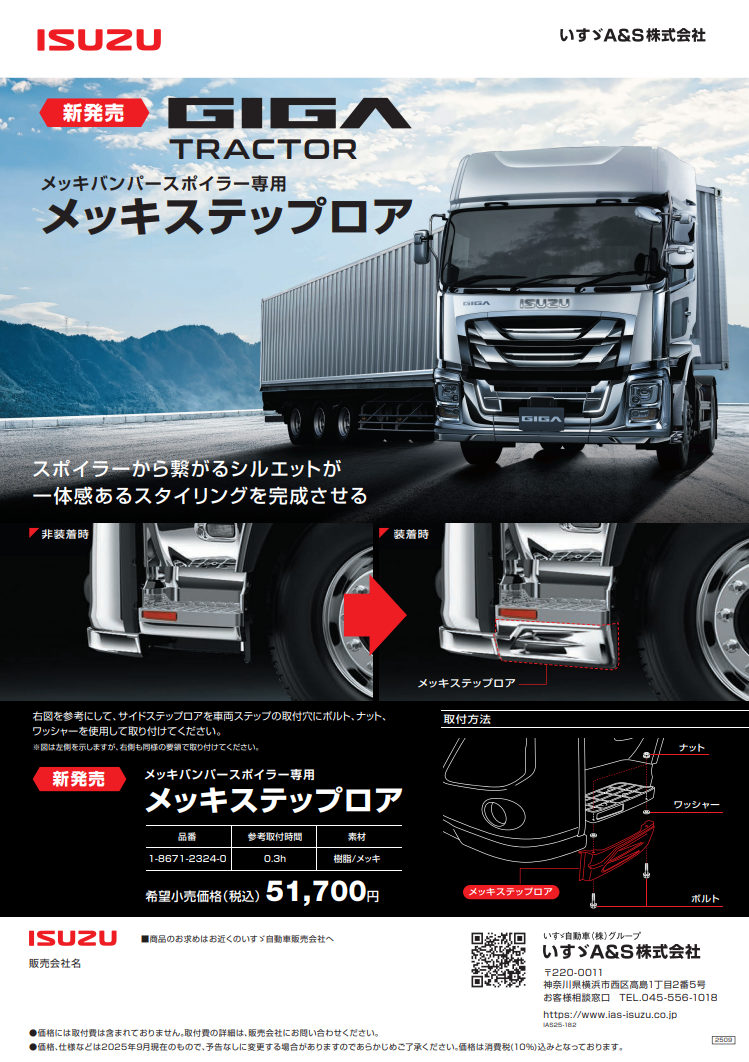 GIGA トラクタ メッキバンパースポイラー装着車専用の『メッキステップロア』を追加設定いたしました。